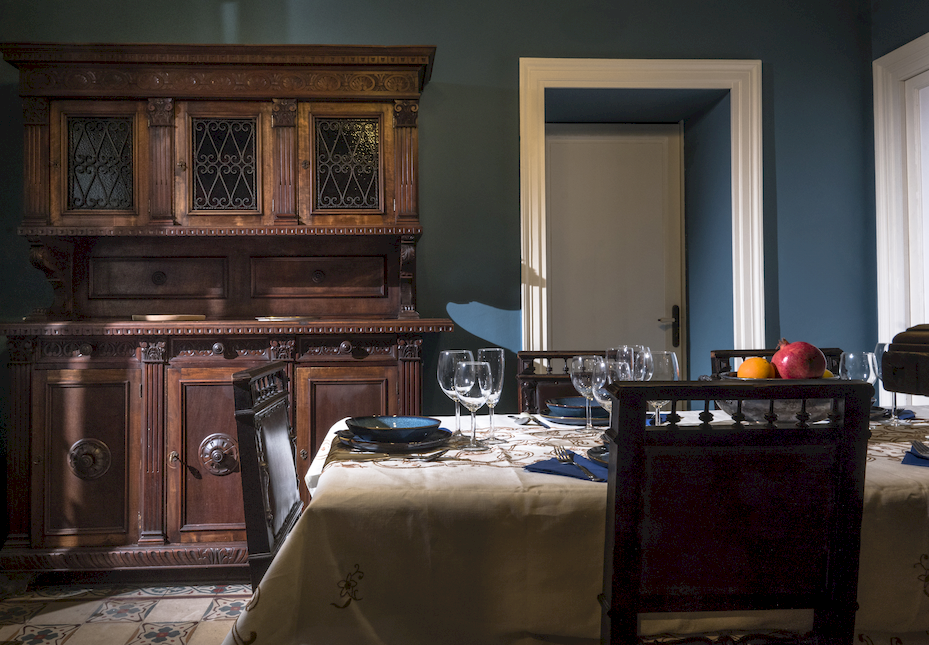 Elegant 18th-century residence with one bedroom, living area and private kitchen in Palazzo Paternò di Jaci.